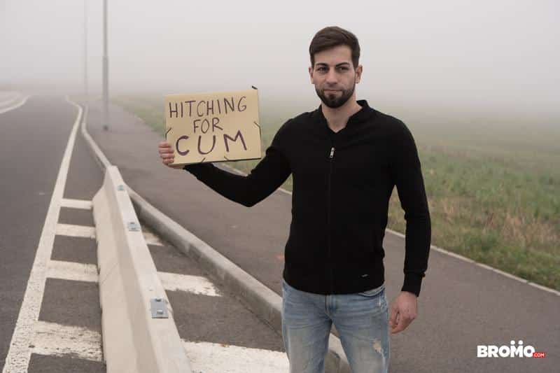 Bromo says: Horny passenger Denny Chris already has his cock in his hand when he spots Brad standing by the side of the road with a “Hitching for CUM” sign!