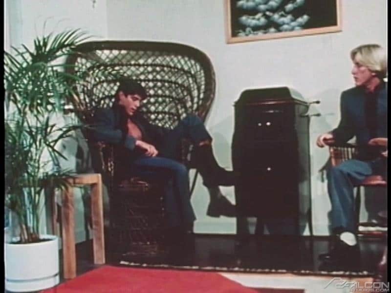Falcon Studios says: Mac Turner relaxes after school with fellow cadet Eric Nolte at home.