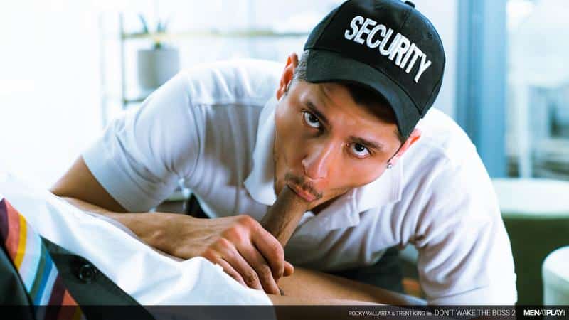 Rocky does not have the slightest hesitation, he goes straight for Trent’s throbbing cock and slowly sucks his fat dick, whilst trying not to wake him.