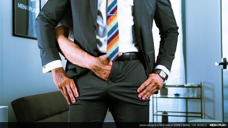 Men at Play says: The boss had a very busy night, and not with paperwork! In ‘i Break Trent King’, we watch the suited Mr. King “play” at his desk on a late Friday night.