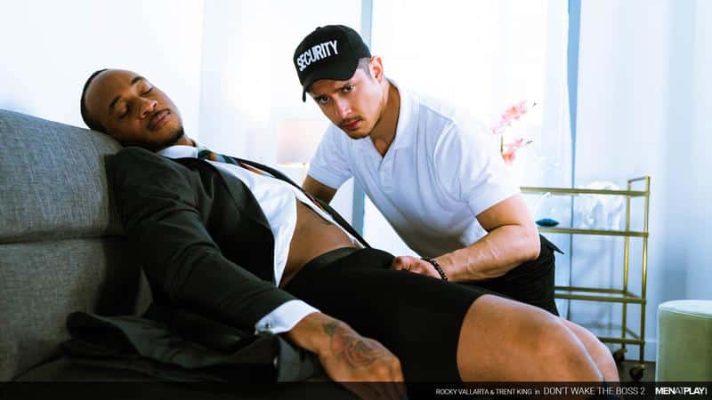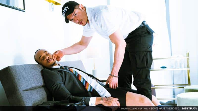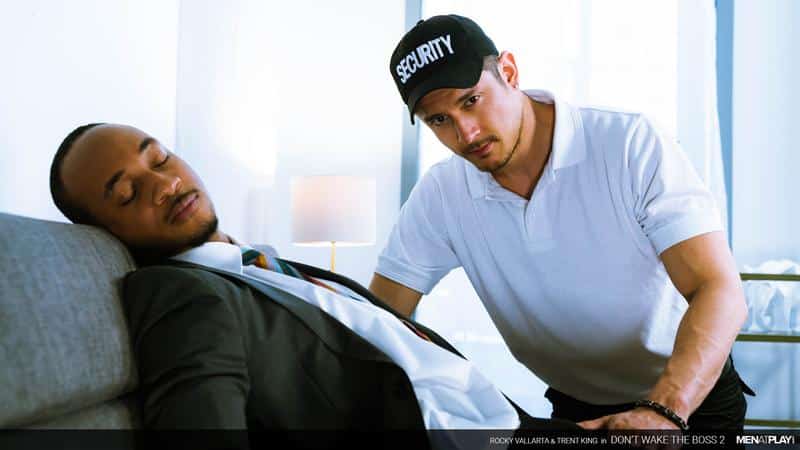 But, however careful he is, the boss eventually rouses from his sleep and quickly turns the tables on Rocky by undressing the blue-collar worker and fucking his smooth tight ass.